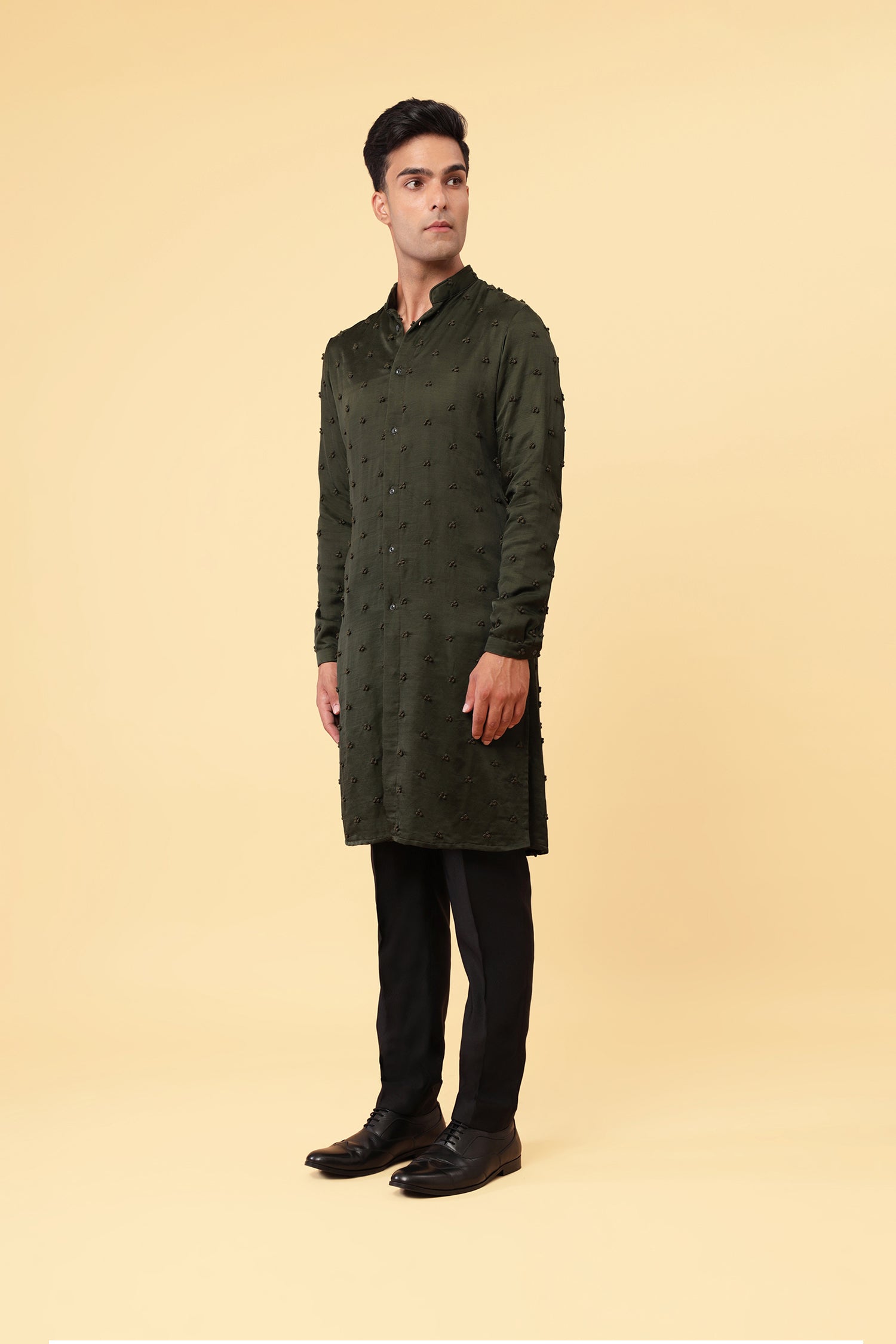 BIG BRAILLE KNOTTED OLIVE KURTA