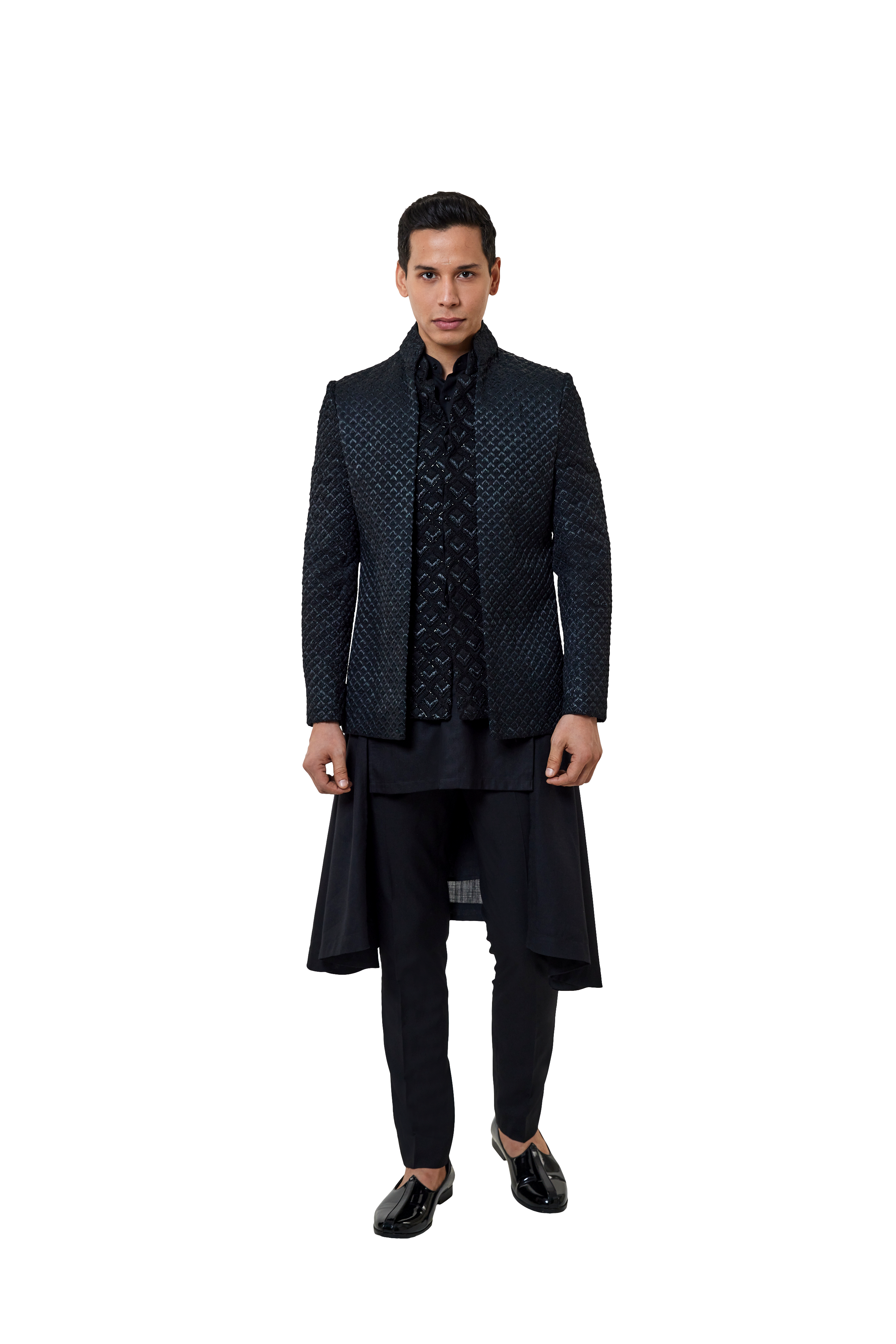 • This Jacket Features Our 'Bom-Arrow' Design In Embroidered Fibre With A Mixed Material Embroidered Mock-Layer