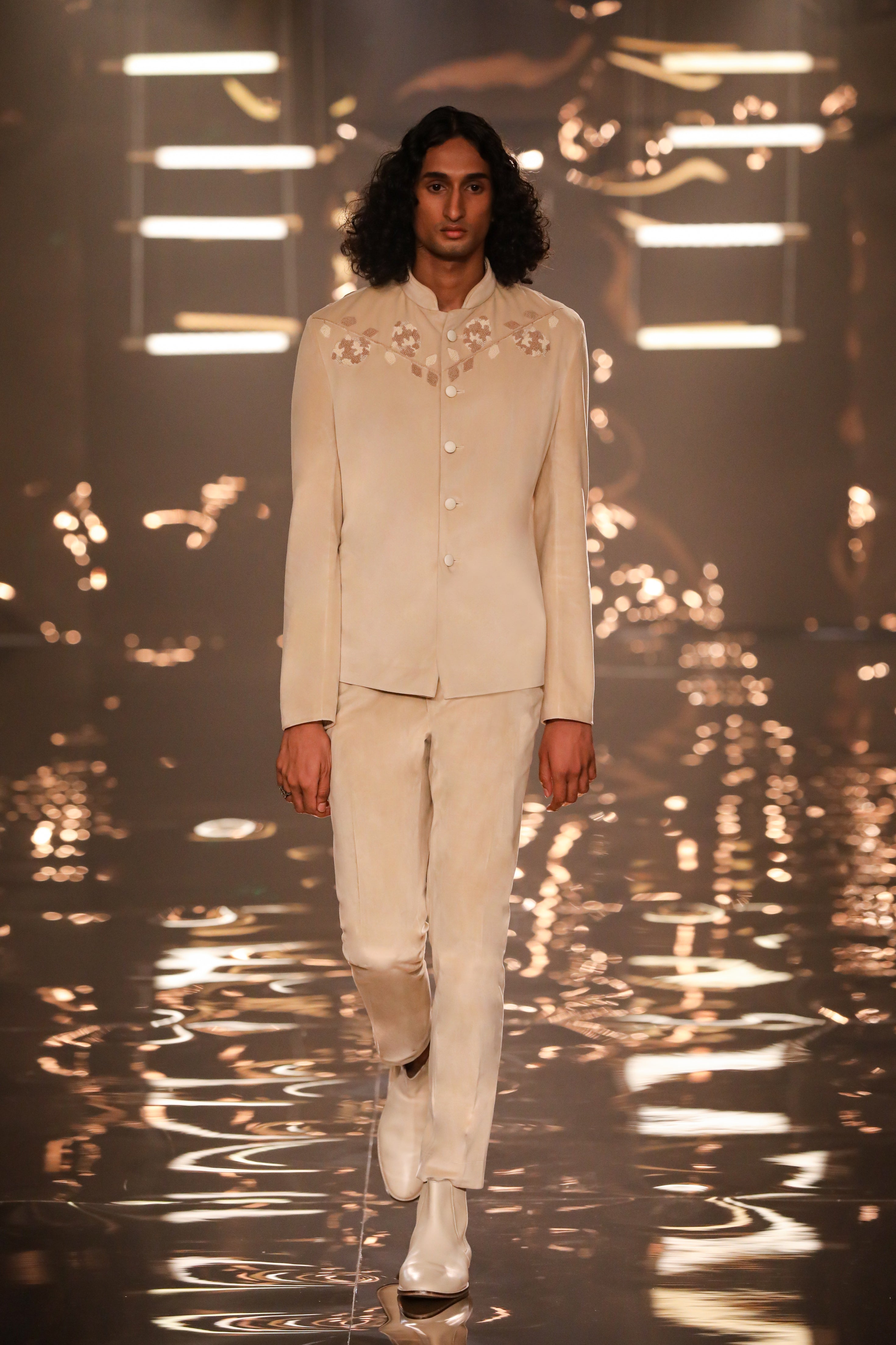 • Plain Patchwork Bandhgala With Knotted Cowboy Art Detailing Pattern